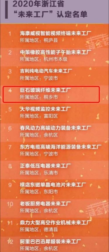 嘉興唯一!浙江發(fā)布首批“未來工廠”名單,巨石玻璃纖維未來工廠上榜
