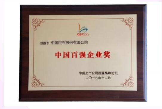 近期,中國巨石還獲得了由中國上市公司百強高峰論壇組委會、華頓經(jīng)濟研究院頒發(fā)的“中國百強企業(yè)獎”,同時獲得該獎項的還有工商銀行、中國神華、中國交建、航天信息、上港集團等企業(yè)。