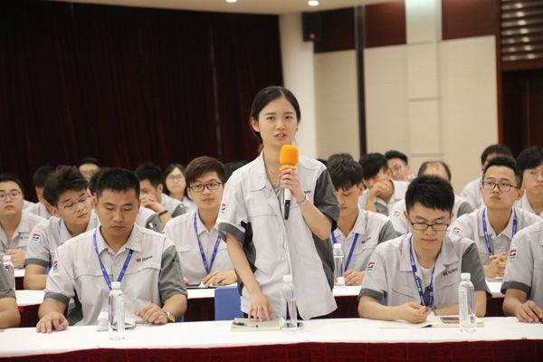 部門代表發(fā)言環(huán)節(jié),產(chǎn)品研發(fā)中心副主任章建忠表示,新進(jìn)大學(xué)生要盡快融入部門,完成角色轉(zhuǎn)換,要干到實處。四分廠廠長陳國衛(wèi)建議大學(xué)生要適應(yīng)大環(huán)境,提升自我,善于發(fā)現(xiàn)并勇于抓住機(jī)會,也要強(qiáng)健身體,有好的身體才能更好地投身工作。六分廠廠長顧建定表示,歡迎各位大學(xué)生到六分廠培訓(xùn)學(xué)習(xí),六分廠將竭盡全力培養(yǎng)每一位大學(xué)生,他建議大學(xué)生要在工作中積極主動,不恥下問,盡快提升自己。各位代表分享了自己十多年的工作經(jīng)驗,希望大家不忘初心,砥礪前行。