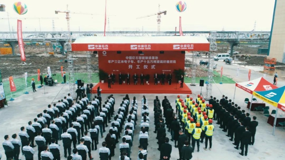 中國巨石智能制造基地年產(chǎn)三億米電子布、年產(chǎn)十五萬噸玻璃纖維雙線勝利開工