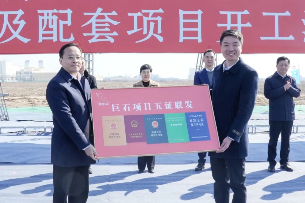 顧坤市長向巨石淮安公司頒發(fā)“項目五證”。