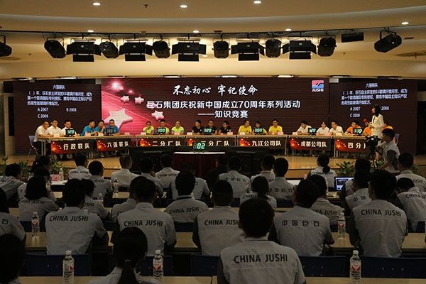 9月20日,巨石集團(tuán)舉行慶祝新中國(guó)成立70周年系列活動(dòng)之知識(shí)競(jìng)賽,7支隊(duì)伍,分別是行政聯(lián)隊(duì)、二分廠(chǎng)隊(duì)、三分廠(chǎng)隊(duì)、四分廠(chǎng)隊(duì)、六強(qiáng)聯(lián)隊(duì)、九江公司隊(duì)、成都公司隊(duì),共21名選手,近百位觀(guān)眾觀(guān)賽,現(xiàn)場(chǎng)氛圍火熱,掌聲、笑聲、加油聲連綿不絕。