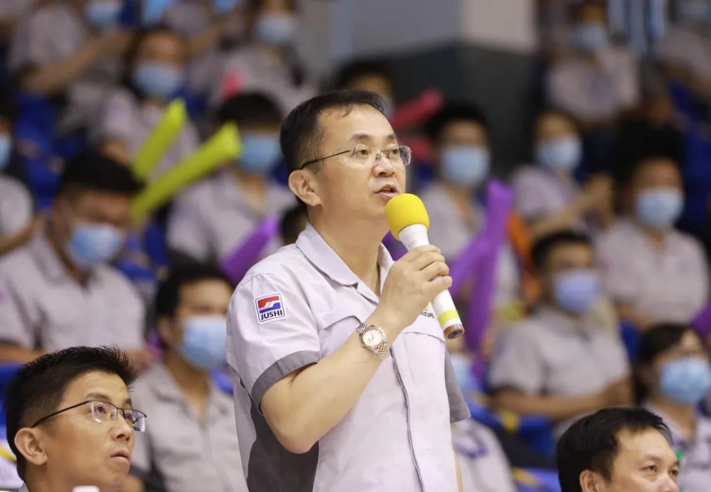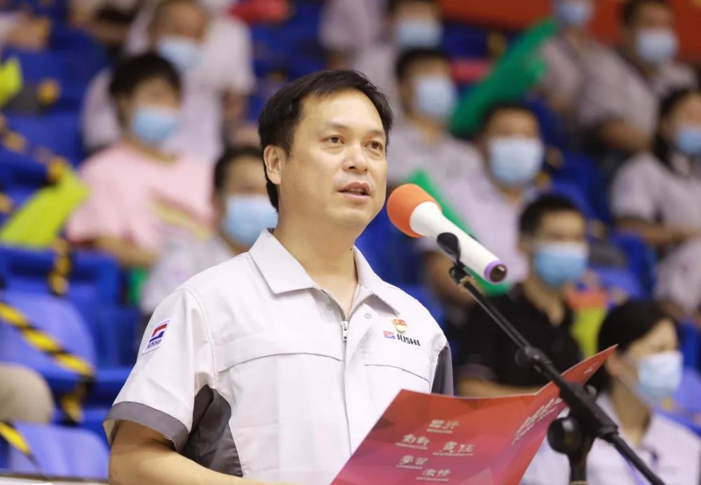 中國(guó)巨石黨委副書(shū)記、副總裁,巨石集團(tuán)總裁楊國(guó)明,中國(guó)巨石黨委委員、副總裁,巨石集團(tuán)副總裁、工會(huì)主席曹?chē)?guó)榮,巨石集團(tuán)工會(huì)副主席沈士江、廖信林等領(lǐng)導(dǎo)出席開(kāi)幕式。楊國(guó)明宣布比賽開(kāi)幕,曹?chē)?guó)榮致開(kāi)幕辭。