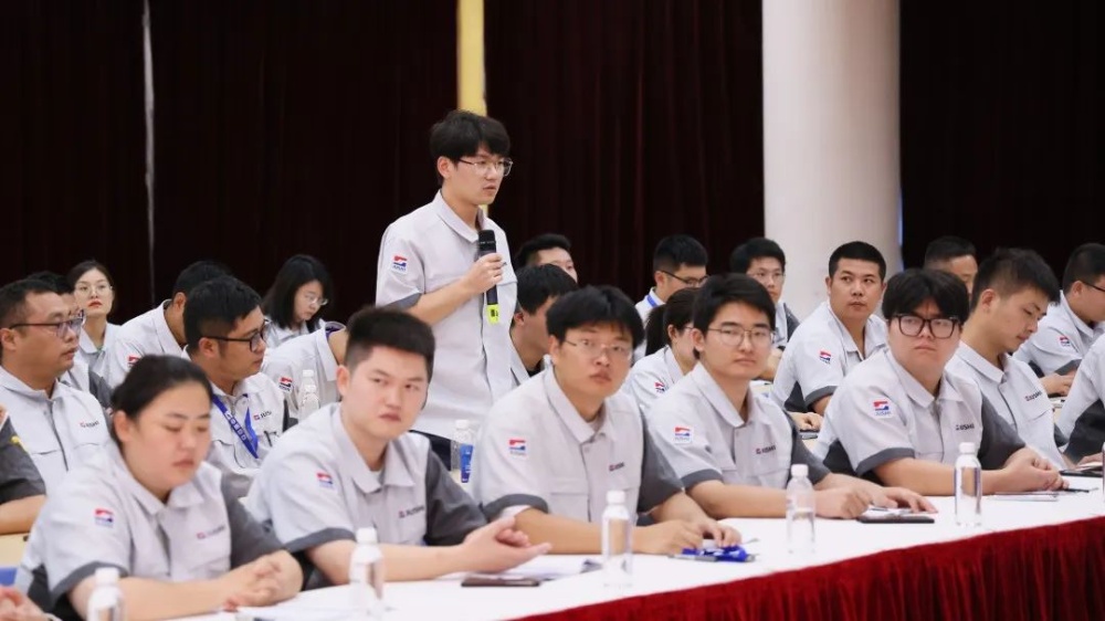 來自信息技術中心的鐘嘉烽現(xiàn)場鼓勵大學生們充分結合自身工作能力和專業(yè)能力,勤于創(chuàng)新,產(chǎn)生自驅力,獲得成長。而銷售管理科的陳思楚則建議大學生們珍惜選擇,堅定信心;謙虛好學,勤奮務實;找好定位,發(fā)揮優(yōu)勢。他們作為往屆大學生代表,分析了入司一年多來的職業(yè)成長,分享了職業(yè)感悟,鼓舞大學生們奮發(fā)向上。