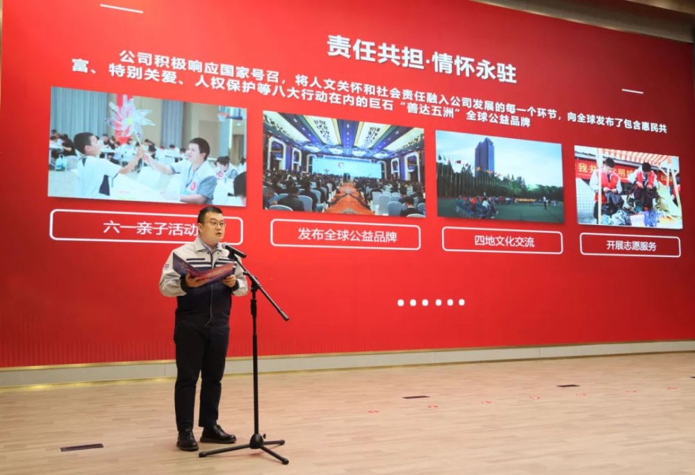 中國(guó)巨石總裁助理、工會(huì)副主席廖信林回顧了公司2024年社會(huì)責(zé)任工作情況。2024年,中國(guó)巨石工會(huì)記錄好人好事超1.2萬(wàn)人次,新增愛心積分17.8萬(wàn)分,超7000名職工慷慨解囊共籌得愛心善款32.7萬(wàn)元,共計(jì)慰問(wèn)幫扶約1300人次。同時(shí),積極投身鄉(xiāng)村振興,開展特色農(nóng)產(chǎn)品采購(gòu)活動(dòng),共計(jì)采購(gòu)金額超15萬(wàn)元;廣泛開展志愿服務(wù)活動(dòng),累計(jì)參與超3000人次。履行社會(huì)責(zé)任,也是高質(zhì)量建設(shè)ESG的基本要求之一。去年,公司工會(huì)加大常態(tài)化幫扶力度,持續(xù)開展各項(xiàng)慰問(wèn)活動(dòng),聚焦ESG核心議題和領(lǐng)域,發(fā)布了包含惠民共富、特別關(guān)愛、文化互鑒、人權(quán)保護(hù)、未來(lái)發(fā)展、全鏈綠色、安全共筑、社區(qū)共建八大行動(dòng)在內(nèi)的“善達(dá)五洲”全球公益品牌,向全球合作伙伴發(fā)起了積極參與公益事業(yè)的倡議。