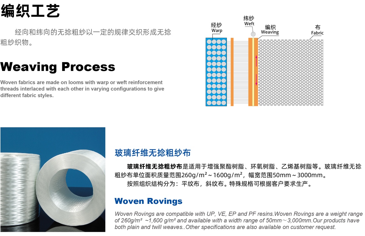 平紋 | EWR270 | 適用于手糊工藝,模壓工藝,浸透快,力學(xué)性能優(yōu)良 Fast wet-out, excellent mechanical properties, | |